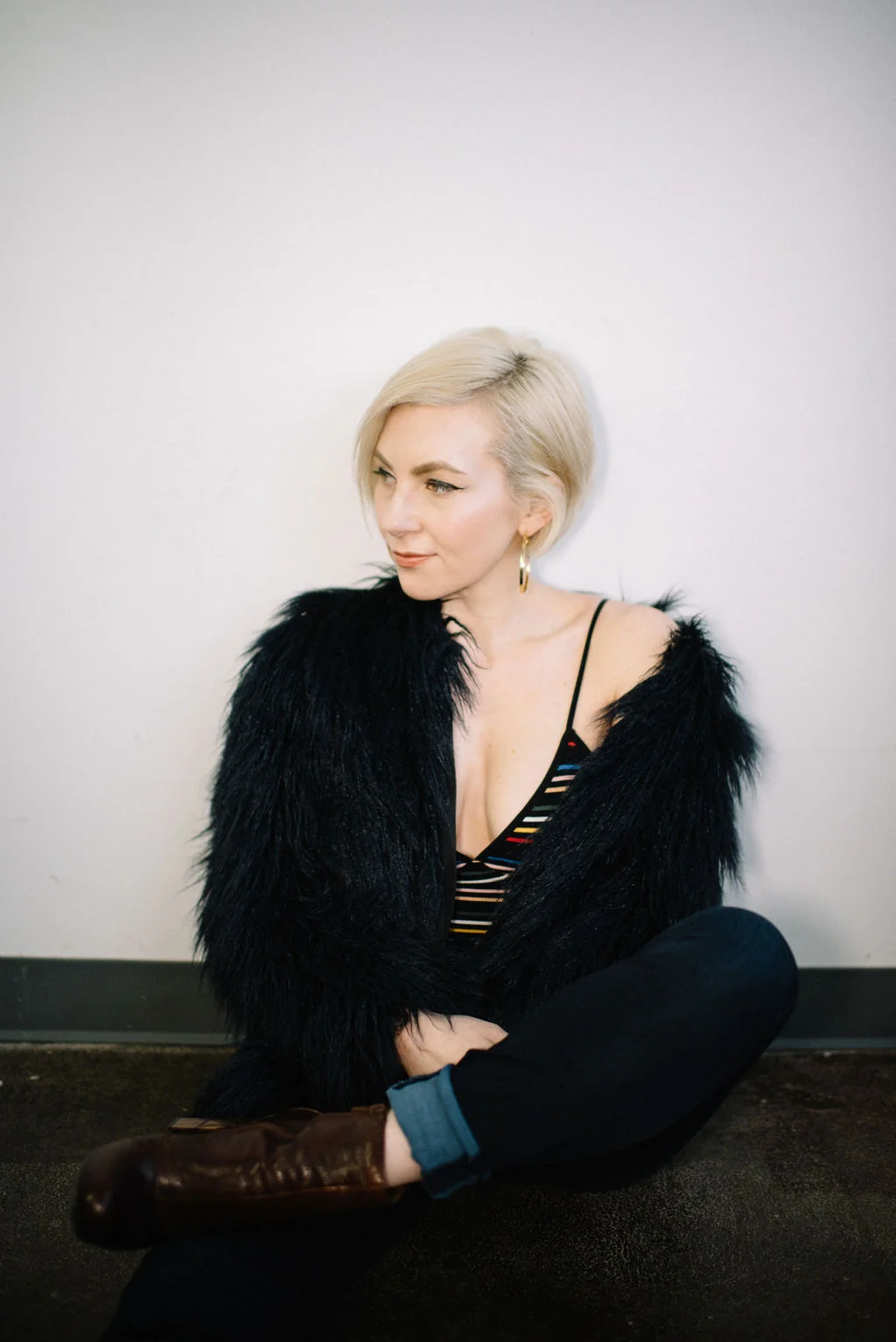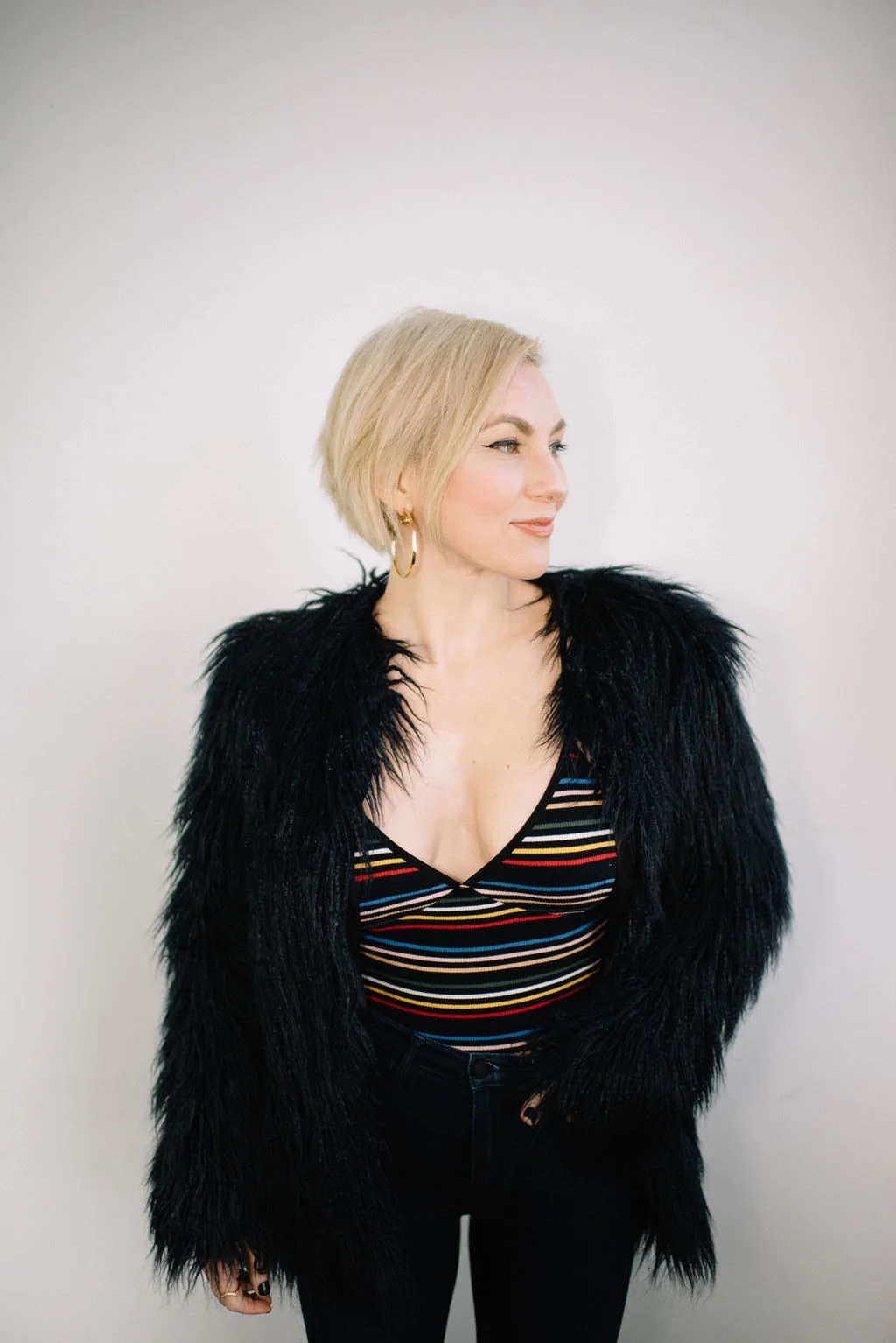 Faux fur Zara (similar) | Bodysuit American Apparel (similar) | Jeans AYR | Booties Nine West (very old) | Jewelry Elizabeth & James