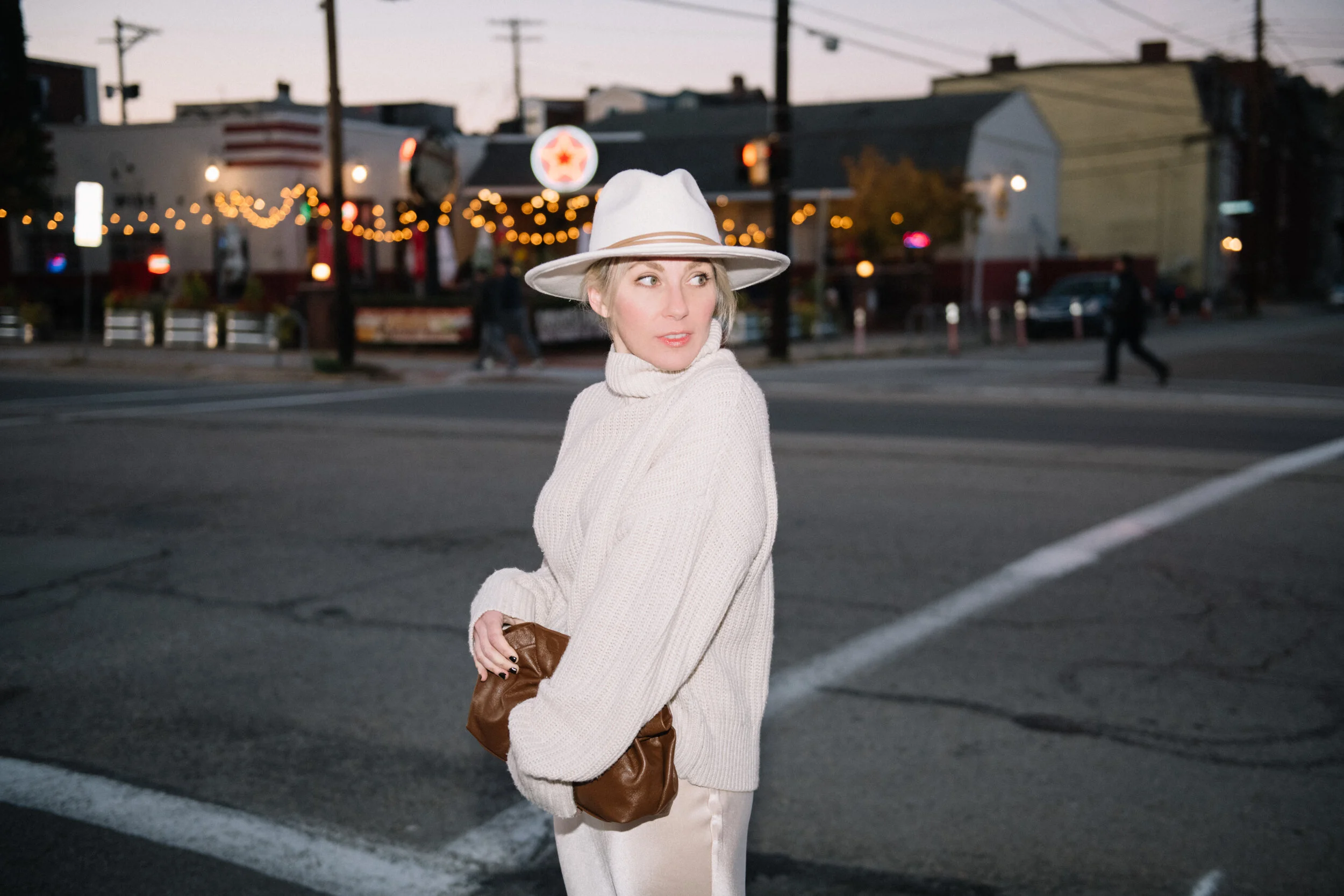 Skirt and Sweater Billie the Label | Hat Anthropologie | Bag Anthropologie | Shoes Stuart Weitzman